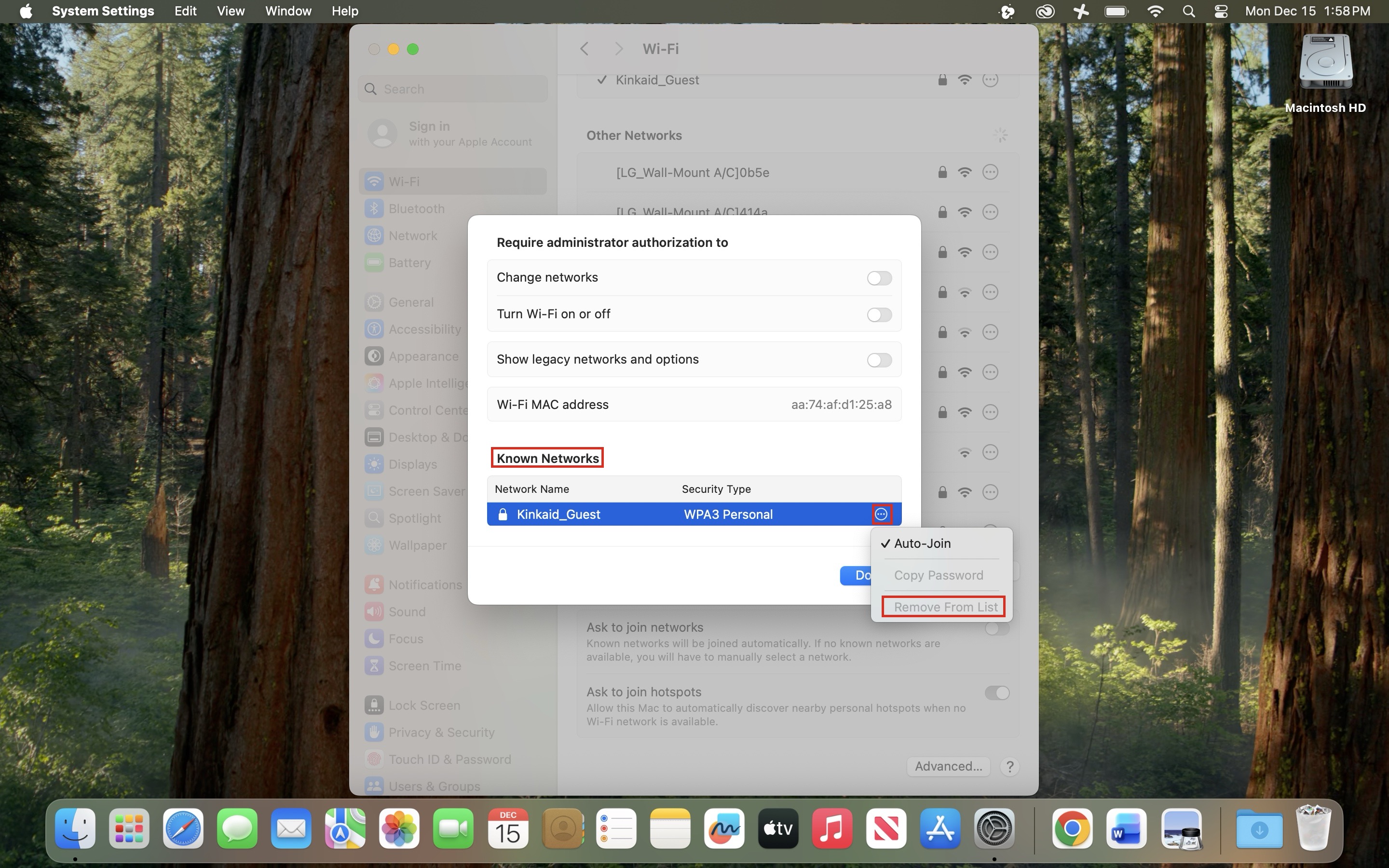 - After removing the “Kinkaid Guest” network, select Done to save your changes and close System Settings.